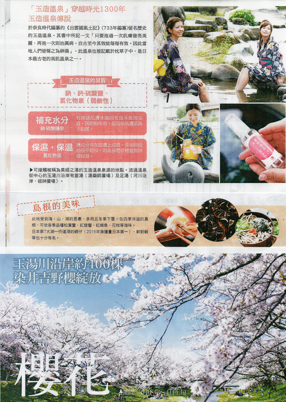 Tamatsukuri Onsen has the longest history in Japan. It was recorded in the Izumo no Kuni Fudoki published in 733 and has been loved since ancient times as the “Hot Spring of the Gods.” Along Tamayu River in the hot spring town, approximately 22 traditional Japanese inns stand side by side, ranging from small 10-room inns to massive luxury hotels accommodating 700 guests, making it the largest hot spring town in the Chugoku region.